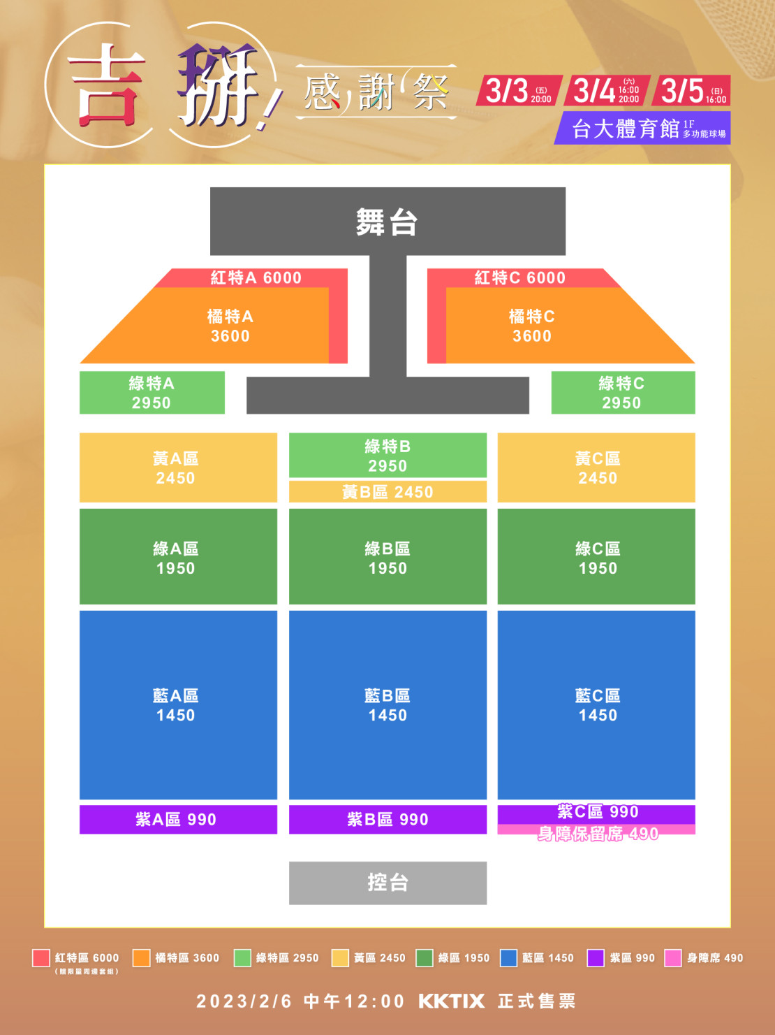 3000 票價  前台顯示測試  good 排(0000-0000號內) (近中央舞台)