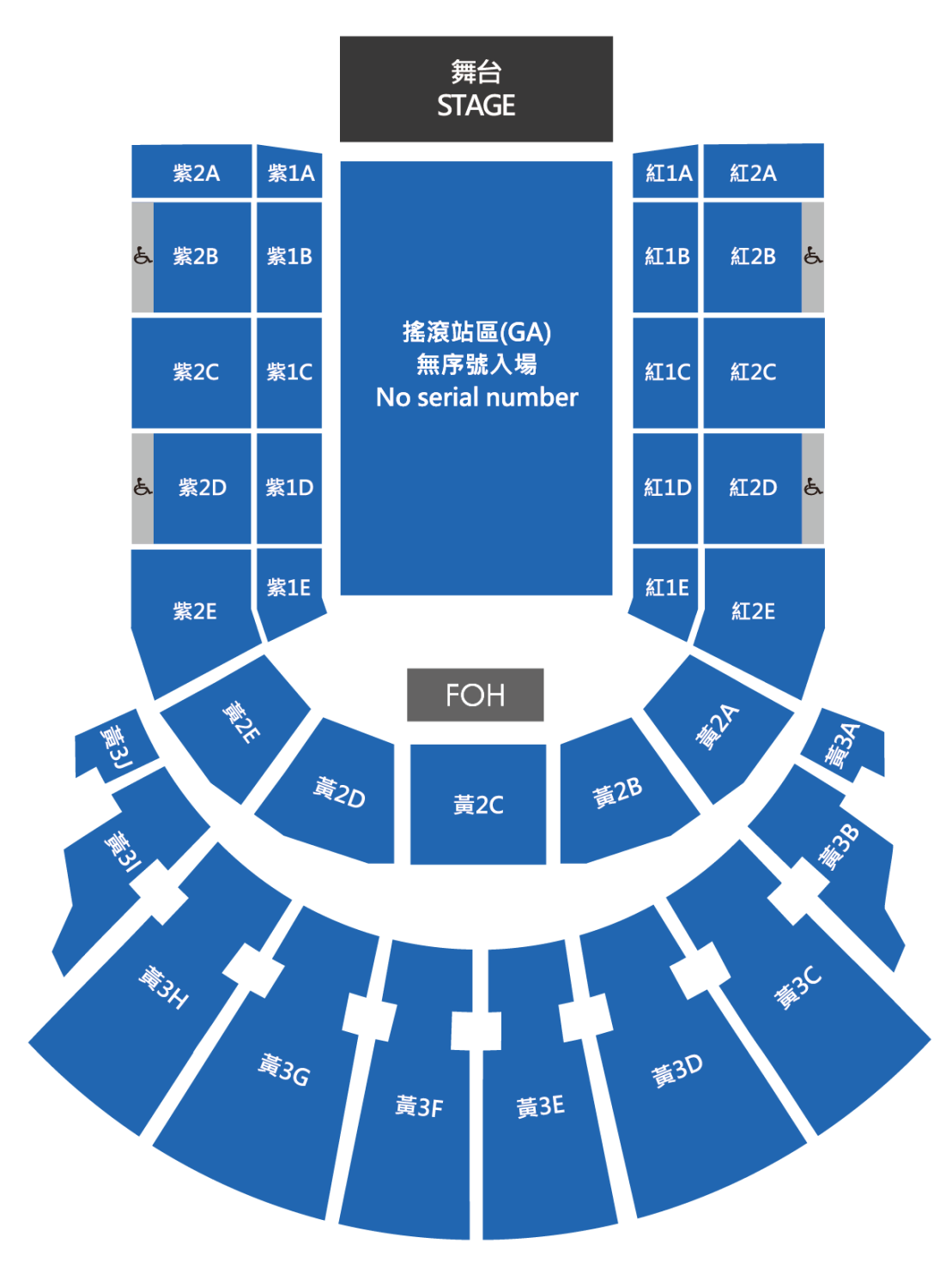3000 票價  前台顯示測試  good 排(0000-0000號內) (近中央舞台)