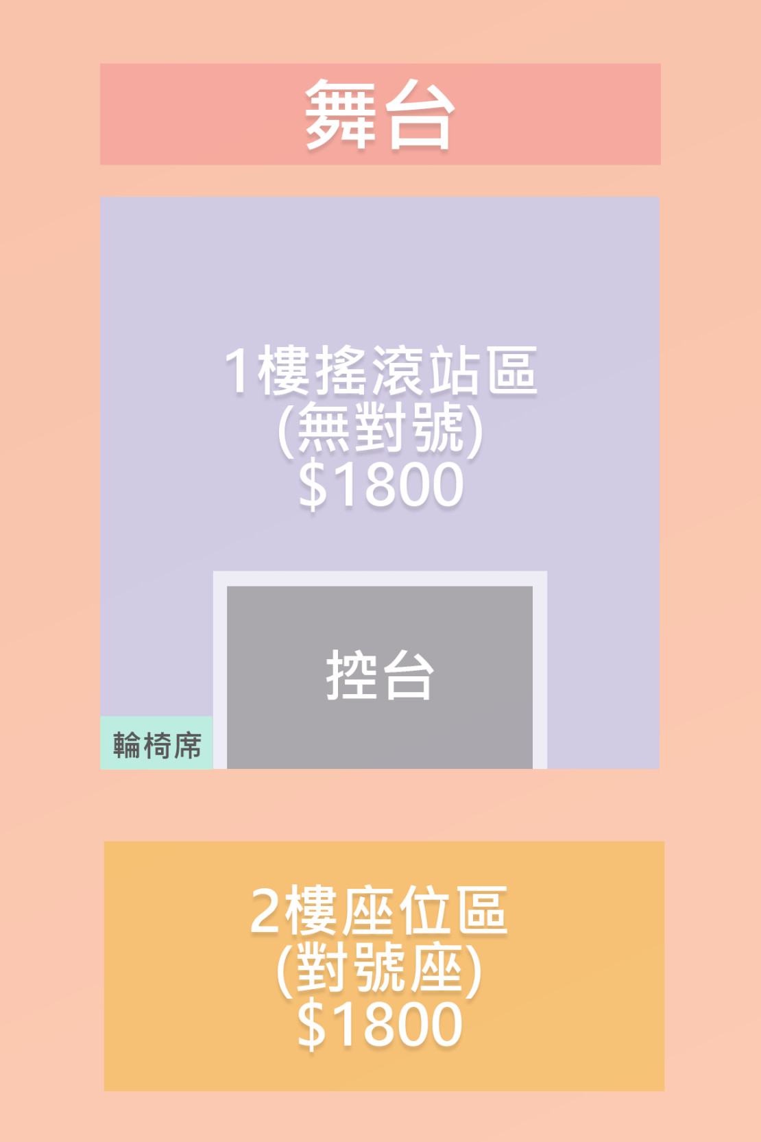3000 票價  前台顯示測試  good 排(0000-0000號內) (近中央舞台)